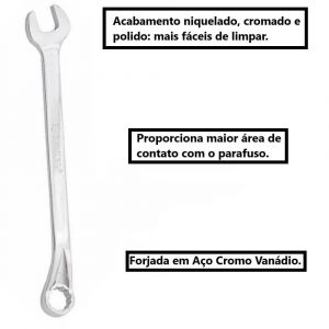 Chave combinada é produzida em aço especial, temperado e revenido, oferecendo alta resistência e durabilidade, seu formato versátil foi projetado para possibilitar o acesso aos parafusos. Garanta já o seu!