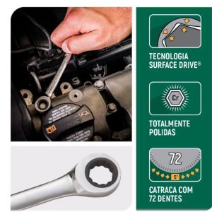 - Catraca de 72 dentes, a extremidade da catraca precisa de apenas 5° para girar porcas ou parafusos.