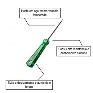 - Haste em aço cromo-vanádio temperado.