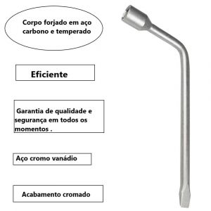 Chave de roda é produzida em aço especial, temperado e revenido, oferecendo alta resistência e durabilidade, com encaixe sextavado em uma das extremidades. Garanta já o seu!