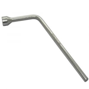 Chave de roda tipo L é produzida em aço, temperado e revenido, oferecendo alta resistência e durabilidade, com encaixe sextavado em uma das extremidades. O seu formato em "L" foi projetado para possibilitar o acesso aos parafusos da roda d