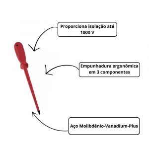 - Utilizar esta Chave isolada, em tensão máxima de 1000 V em corrente alternada e 1500 V em corrente contínua.