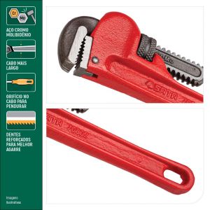 - É indispensável para encanadores e profissionais que necessitam de uma ferramenta regulável para o aperto e desaperto de tubos, sua construção robusta garante desempenho superior em diversas aplicações.
