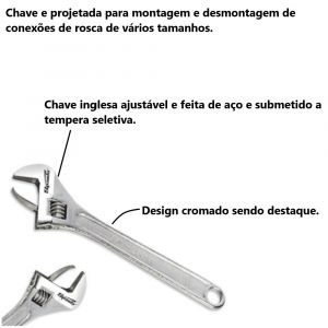 - Chave inglesa ajustável e feita de aço e submetido a tempera seletiva.