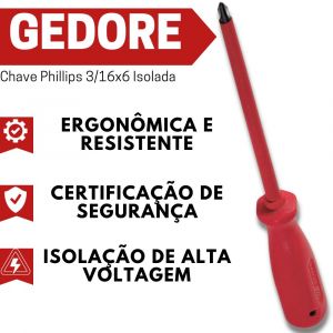 Conteúdo da Embalagem1Unidade de Chave Phillips 3/16"x6" Isolada Gedore