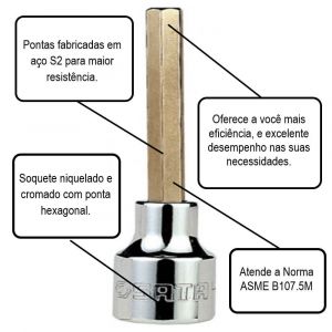 - Soquete niquelado e cromado com ponta hexagonal.