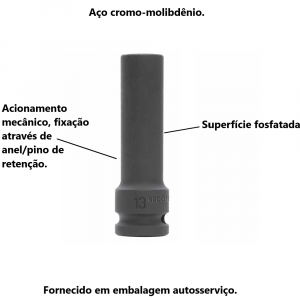 Conteúdo da Embalagem1 Unidade de Chave Soquete de Impacto Sextavado Longo 28mm 1/2" Gedore