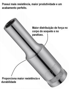 - Proporcionar excelente qualidade é maior distribuição de força no corpo do soquete e no parafuso.
