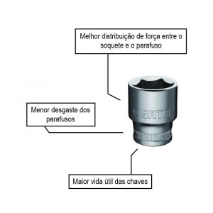 - Maior torque: Melhor distribuição de força entre o soquete e o parafuso.