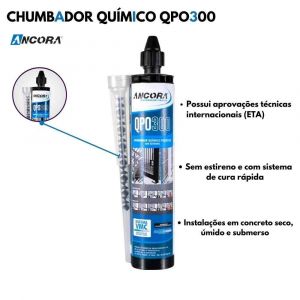 - Sistema de ancoragem adesiva por injeção, bicomponente à base de poliéster para cargas médias e leves em concreto e alvenaria.