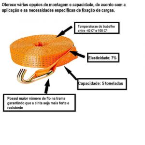 Conteúdo da Embalagem1 Unidade Cinta De Amarração Sem Catraca 5 Toneladas 9 Metros Robustec