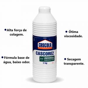 - Cascola Cascorez Universal 1 kg é um adesivo à base de Pva, indicado para as colagens de madeiras de média e baixa densidades, laminados decorativos, papel, papelão e materiais porosos em geral.