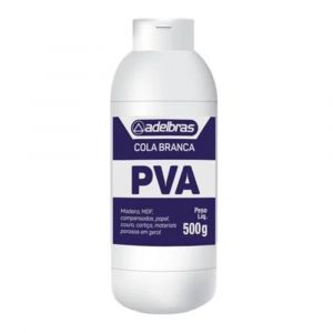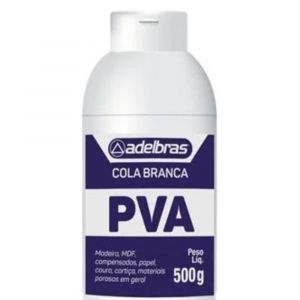- A Cola Líquida Branca PVA Adelbras 500 g é ideal para colar madeira, papel, cortiça, MDF e materiais porosos em geral.