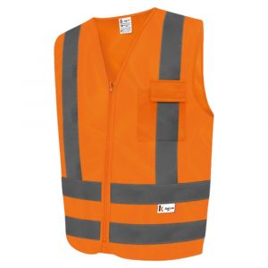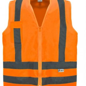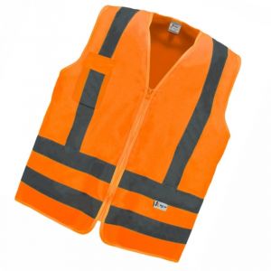 - Confeccionado na cor laranja fluorescente, ele conta com faixas refletivas horizontais que aumentam a visibilidade em condições noturnas ou de baixa luz.