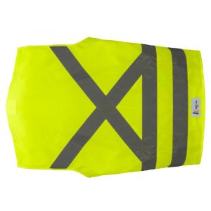Colete Refletivo Amarelo com Bolso Tamanho XG da Kalipso de alta visibilidade, confeccionado em tecido 100% poliéster fluorescente com faixas reflexivas impermeáveis na parte frontal e costa, fechamento frontal em zíper.