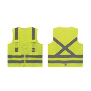 - Proporciona alta visibilidade e segurança confeccionado em tecido fluorescente com faixas retrorrefletivas.