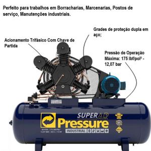 Compressor De Ar 60 Pés 175 PSI 425 Litros Trifásico 220/380V Pressure