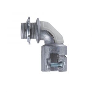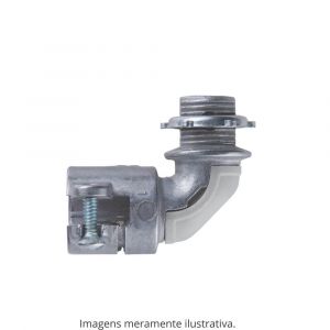 - Conector curvo em alumínio com rosca BSP, acabamento sem pintura e janela de inspeção em termoplástico.