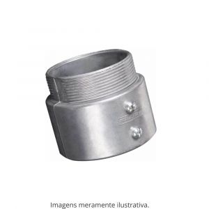 - Conector reto em alumínio sem rosca (unidut cônico sem rosca BSP) e acabamento sem pintura.
