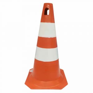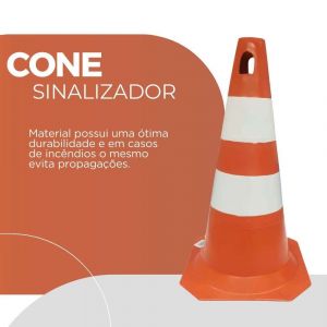 - Cone para sinalização e segurança injetado em PVC nas cores laranja e branco;