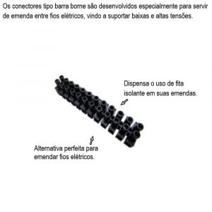 O conector tipo barra borne é desenvolvido especialmente para servir de emenda entre fios elétricos, vindo a suportar baixas e altas tensões. Em geral, é empregado em redes elétricas domesticas e industriais, entre outras, proporciona uma excelente qualidade. Corra e adquira já o seu!