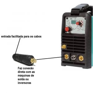 - Utilizado por quem deseja realizar extensão do cabo de solda ou conectar, adaptar seu porta eletrodo e/ou garra negativa de 13mm em máquinas de solda sem perder a performance de soldagem.