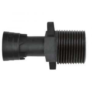 Conector Inicial Implebrás com rosca 3/4" e anel trava 16 mm, ideal para sistemas de irrigação por gotejamento, fácil de instalar, proporciona vedação segura, alta durabilidade e resistência a raios UV, com uso agrícola e residencial.