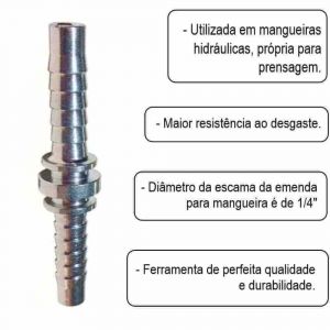 - Diâmetro da escama da emenda para mangueira: 1/4"