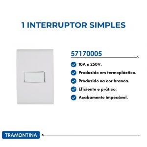 - O Conjunto 4x2 com 1 Interruptor Simples Horizontal Tramontina Liz 10 A 250 V Branco vai garantir mais qualidade e funcionalidade para os seus espaços.
