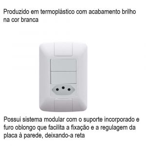 - Possui sistema modular com o suporte incorporado e furo oblongo que facilita a fixação e a regulagem da placa à parede, deixando-a reta.