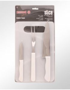 Conjunto para Churrasco, 4 peças Mundial 8000-TPPB - Peças com lâmina em aço inoxidável, para evitar qualquer tipo de contaminação. - Fio com excepcional resistência e durabilidade. - Cabo em resina termoplástica branco, com design profissional, anatômico e com superfície porosa para evitar escorregamento, desenvolvido para sua segurança e total conforto. Indicado: - Utilizar na sua cozinha ou preparar deliciosos churrascos com praticidade.