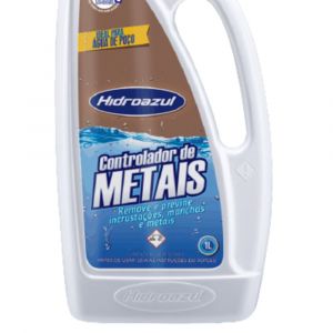 - O Controlador de Metais 1 Litro Hidroazul é um produto especialmente formulado para eliminar e prevenir manchas causadas por metais na água da piscina.