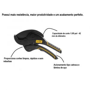 - Capacidade de corte do cortador de tubos de PVC: 1.5/8" - 42 mm de diâmetro.