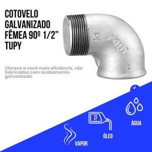 Conteúdo da Embalagem1 Unidade Cotovelo Galvanizado Fêmea 90º 1/2” Tupy