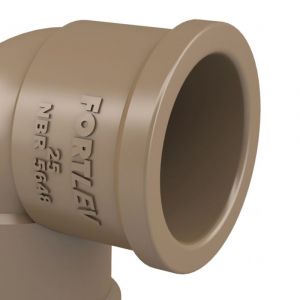 - O cotovelo 90° Soldável Fortlev realiza mudança de direção da tubulação soldável de água fria em ângulo de 90°.
