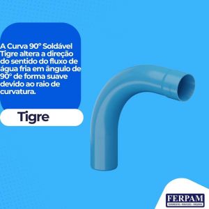 - A Curva 90º Soldável Tigre altera a direção do sentido do fluxo de água fria em ângulo de 90° de forma suave devido ao raio de curvatura.