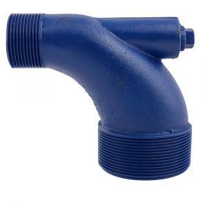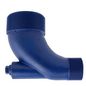Conexão de ferro projetada para instalações hidráulicas. Esta curva permite a conexão a um registro, ao mesmo tempo que realiza a redução da tubulação de 2 para 1.1/4 polegadas, otimizando o fluxo e a montagem do sistema.