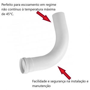 - Fabricada em PVC na cor branca e projetada para escoamento em regime não contínuo à temperatura máxima de 45°C.
