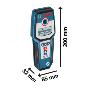- O Detector de Materiais Bosch GMS 120 foi desenvolvido para detecção de metais, fios energizados e madeiramento principalmente em drywall, com ele é possível detectar metais ferrosos a até 12 cm de profundidade.