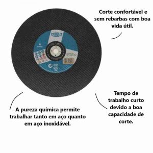 - Tem a capacidade de corte otimizada tem uma elevada durabilidade, já com pouca força vertical, o disco se apresenta agressivo e confortável para o manuseio.