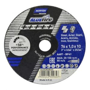 - O Disco de Desbaste Bluefire Norton combina um composto abrasivo de alto desempenho com uma estrutura que favorece corte eficiente e operação mais suave, gerando menos calor e proporcionando maior conforto ao operador durante o uso.