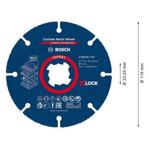 - O disco de corte EXPERT Carbide Multi-wheel conta com o revolucionário sistema X-LOCK proporciona o encaixe seguro do acessório na ferramenta dispensando o uso de qualquer acessório adicional, como chave, flange ou porca.