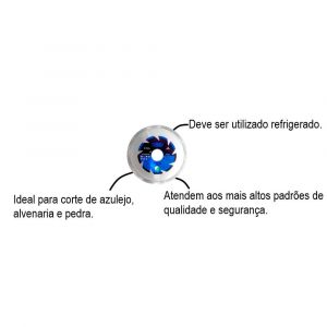 - Excelente desempenho para cortes de pedras em geral, concreto e cerâmicas.