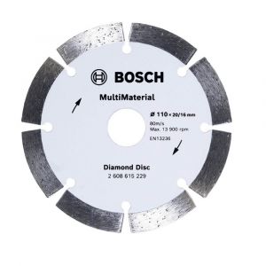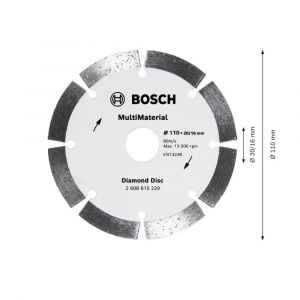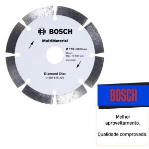 - O disco diamantado Bosch Multimaterial Segmentado 110mm possui alta durabilidade ao cortar diversos materiais do canteiro de obras.