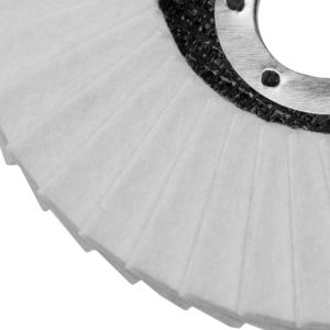 Fabricado com feltro de alta densidade, este disco flap assegura durabilidade e uma aplicação consistente de compostos de polimento. Sua estrutura em formato de flap permite um trabalho mais refrigerado, evitando o superaquecimento da peça e garantindo um acabamento espelhado e sem marcas.