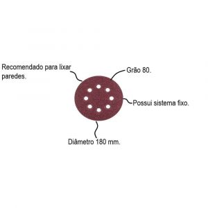 Conteúdo da Embalagem1 Disco Lixa Parede 180mm P.180 Mlp710 800h Com 10 unidades Menegotti