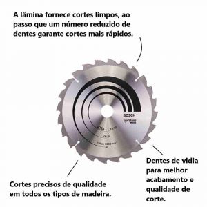 - O disco de serra circular Bosch Optiline Wood oferece cortes de qualidade precisos em todos os tipos de madeira.