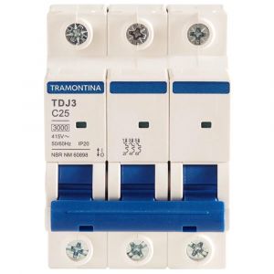 - Com o Minidisjuntor TDJ3 3 P 25 A 3kA curva C Tramontina você irá garantir alta qualidade para seus projetos elétricos.