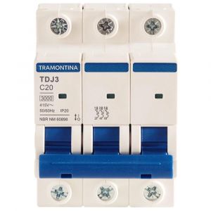 - Com o Minidisjuntor TDJ3 3 P 20 A 3kA curva C Tramontina você irá garantir alta qualidade para seus projetos elétricos.