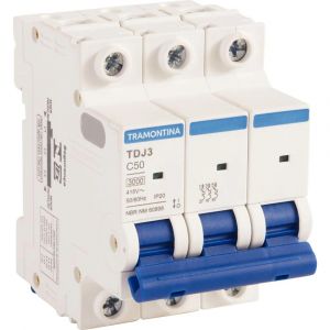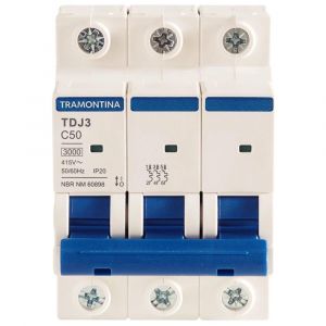 - Com o Minidisjuntor TDJ3 3 P 50 A 3kA curva C Tramontina você irá garantir alta qualidade para seus projetos elétricos.